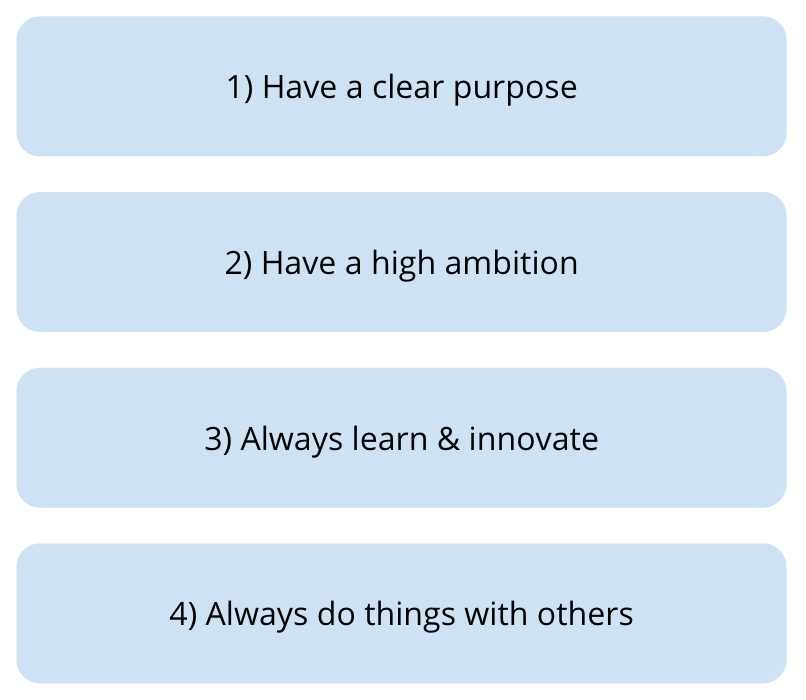 As you go after your purpose with your high ambition plan, it’s impossible to know in advance what will work and what won’t. Therefore, it’s critical to understand that in a rapidly changing world, learning & innovating faster than your competitors is the only long term sustainable strategy and competitive advantage.